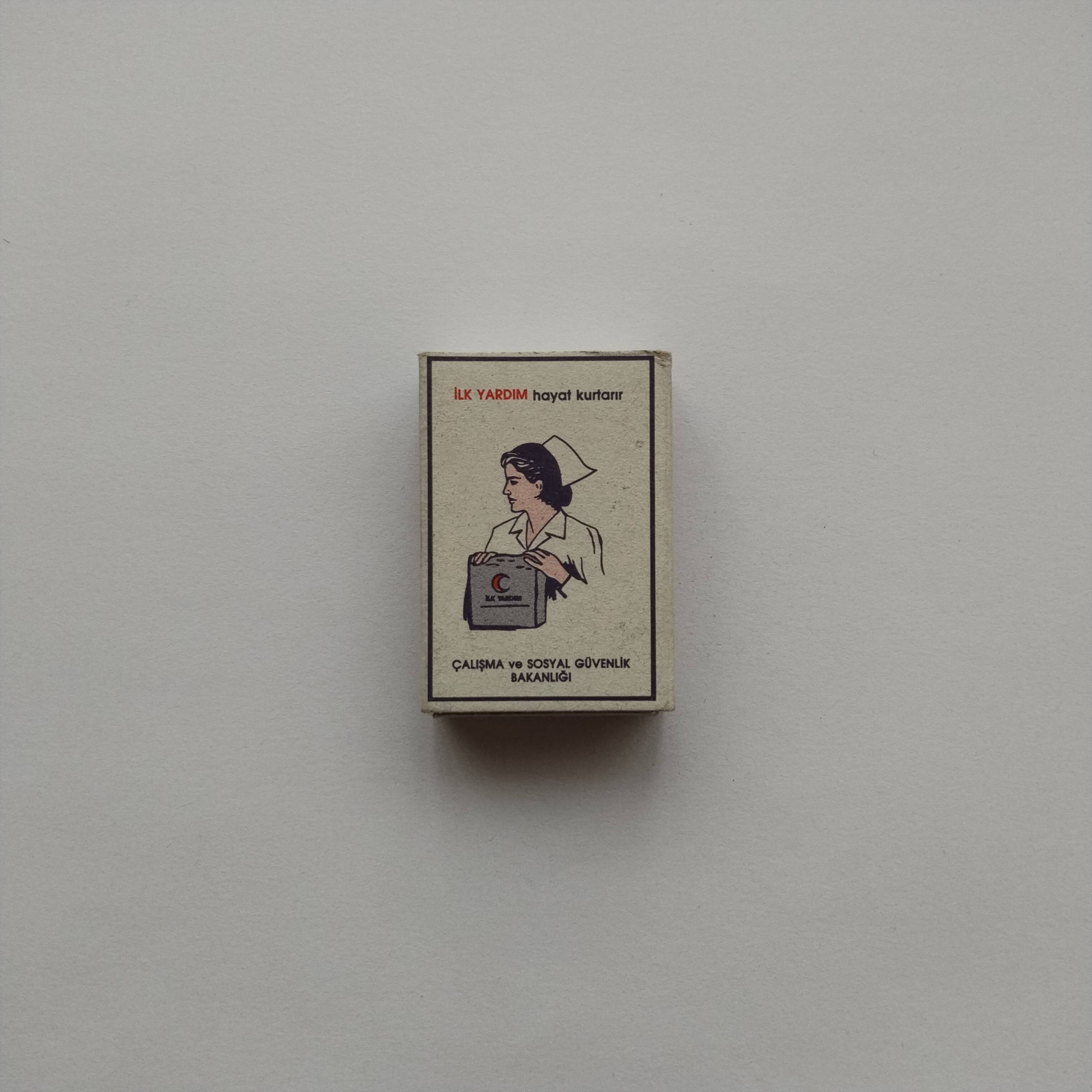 Category :PromotionalCountry :TürkiyeType :Cardboard matchboxCondition :GoodRarity :⭐⭐⭐☆☆Description :“İlk Yardım hayat kurtarır” awareness matchbox issued by Çalışma ve Sosyal Güvenlik Bakanlığı; nurse illustration holding first aid kit.ShareTwitter-xFacebookShare-emailCopy URL to clipboardChange Matchbox