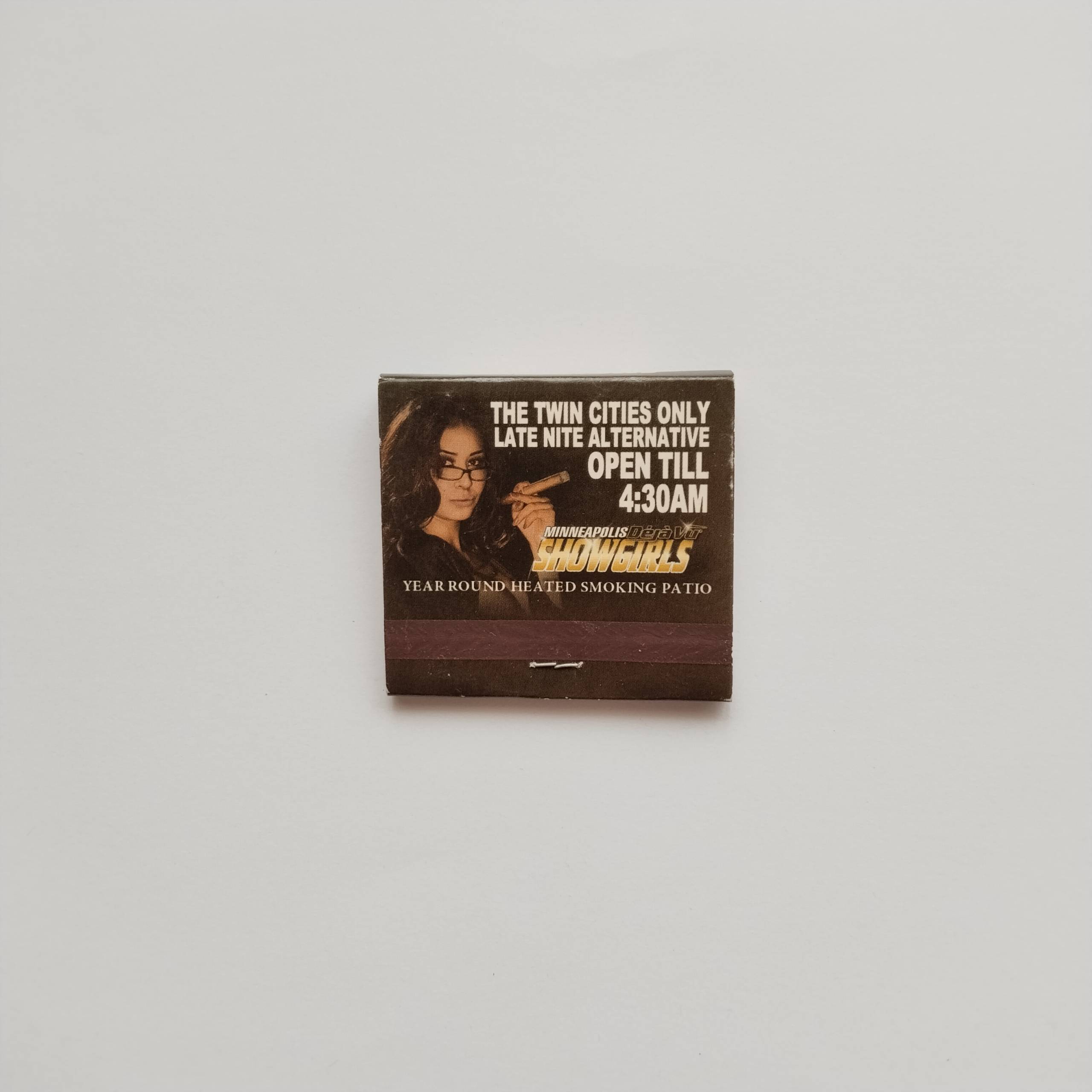 Category :Nightlife PromotionalCountry :USAType :Cardboard, nightclub promotional matchboxCondition :GoodRarity :⭐⭐⭐☆☆Description :Deja Vu Showgirls Minneapolis advertising matchbox featuring late-night venue promotion, model imagery, opening hours, and website brandingShare