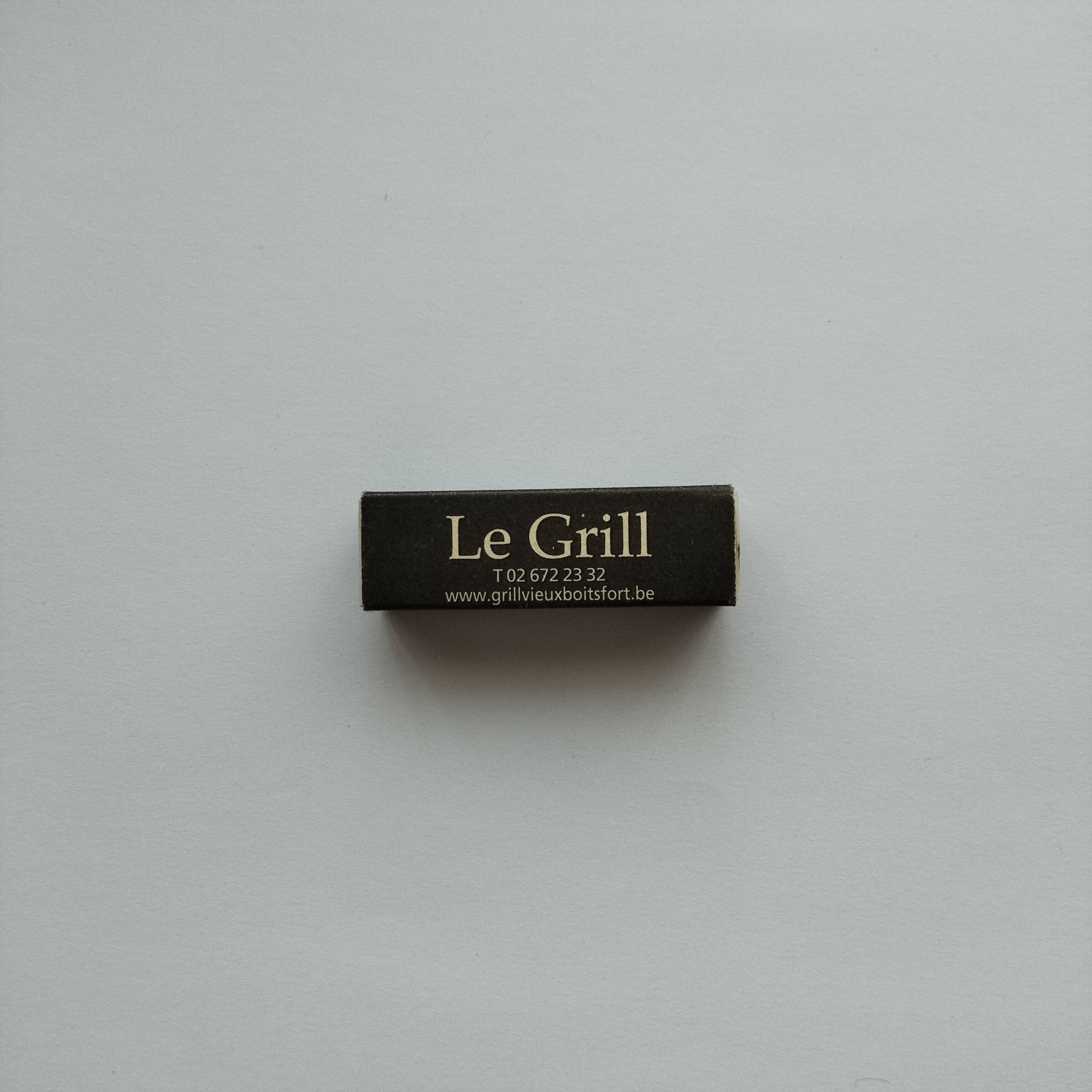 Category :AdvertisingCountry :BelgiumType :Cardboard matchboxCondition :Very GoodRarity :⭐⭐⭐⭐☆Description :Black minimalist matchbox from “Le Grill” restaurant featuring phone number and website (grillvieuxboitsfort.be). Clean and elegant promotional design.Share