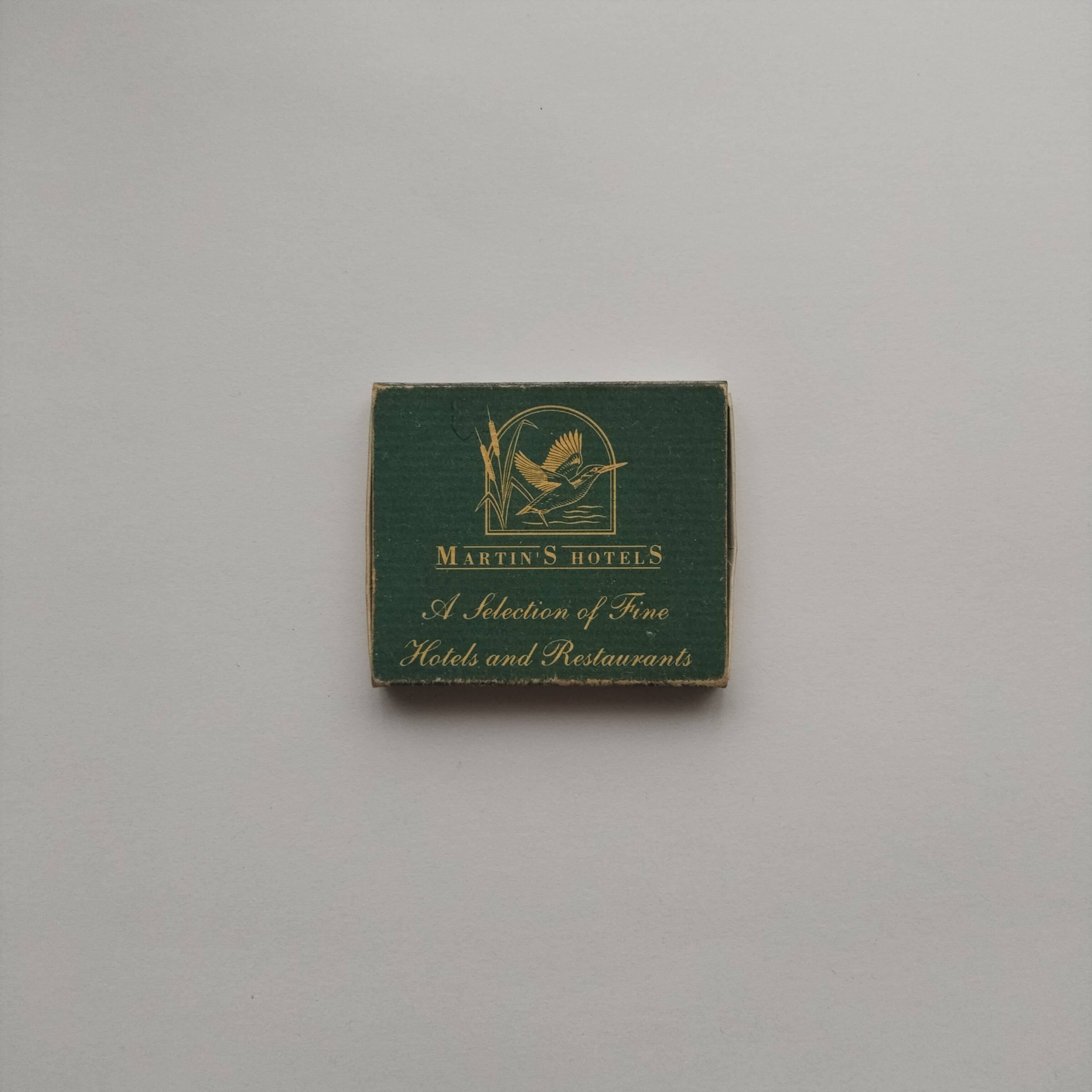 Category :Hotel AdvertisingCountry :BelgiumType :Cardboard matchboxCondition :GoodRarity :⭐⭐⭐⭐Description :Matchbox advertising Martin’s Hotels, a Belgian hotel and restaurant group. Back lists several properties including Château du Lac, Grand Hôtel Waterloo and Le Manoir du Lac.Share