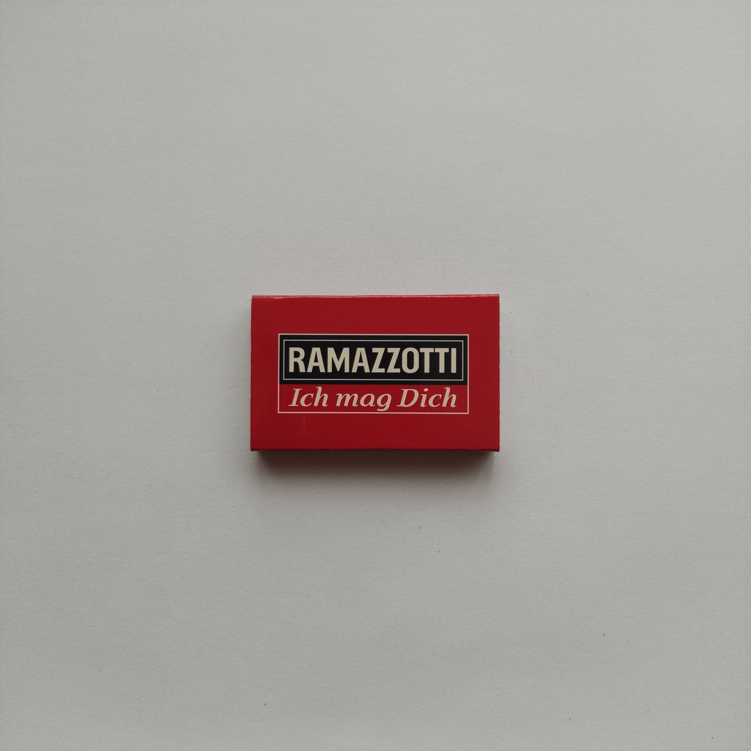 Category :Advertising / BeverageCountry :GermanyType :Cardboard matchboxCondition :Very GoodRarity :⭐⭐⭐Description :Bright red Ramazzotti promotional matchbox with German slogan “Ich mag Dich.” Advertising item for the Italian amaro brand popular in Europe.Share