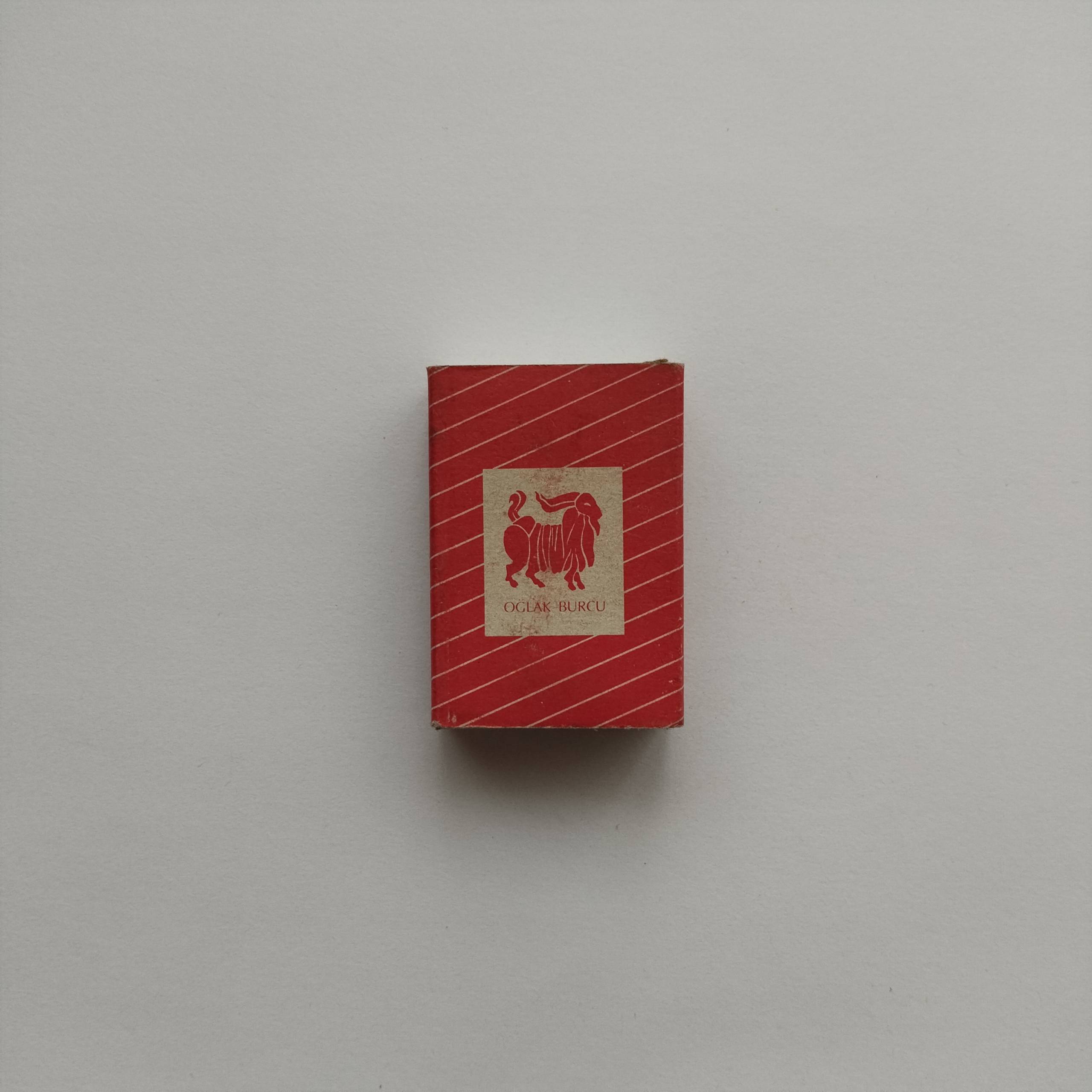 Category :ThemedCountry :TürkiyeType :Cardboard matchboxCondition :Good (minor edge wear)Rarity :⭐⭐☆☆☆Description :“Türkay” branded zodiac series matchbox; red striped design with Capricorn (Oğlak Burcu) illustration. Reverse includes product info and safety textShare